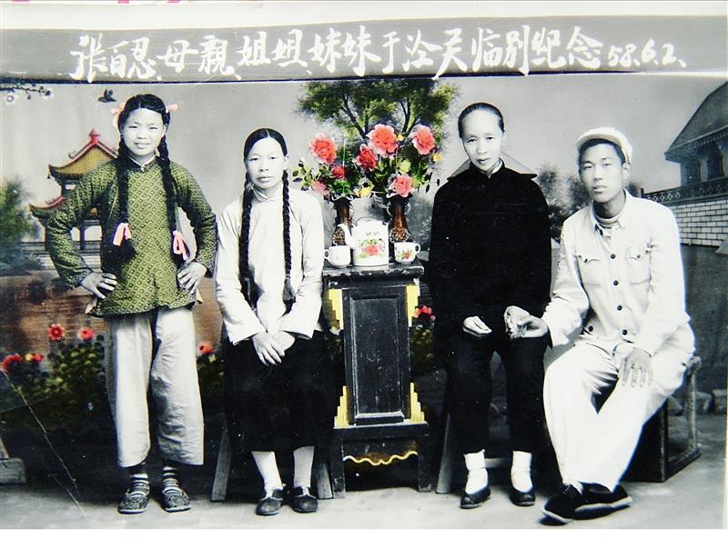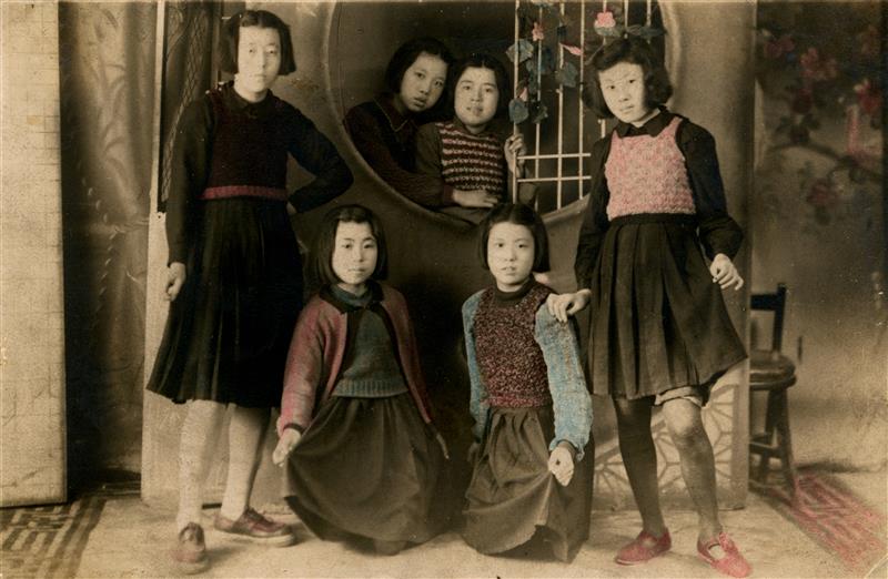 這是母親沈陽(yáng)大南學(xué)校小學(xué)畢業(yè)后,于1948年和同學(xué)到照像館的合影留念(后面窗口左一)。當(dāng)時(shí)家里很窮,母親穿著打補(bǔ)丁的褲子和舊布鞋,看到其他幾個(gè)富家女孩穿著漂亮的裙子和時(shí)髦的皮鞋,感到太寒酸了,就站到后面去了。 馬久利