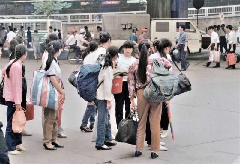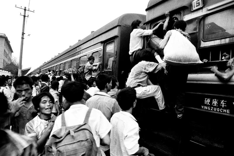 1992年8月27日,四川南充地區(qū)的農(nóng)民,剛收割完水稻,便紛紛打起背包南下,一時(shí)間廣安火車站前人山人海。列車一到站,連車門都難以打開(kāi),下車的人下不來(lái),上車的人背著行李從車窗往里爬。 周國(guó)強(qiáng)