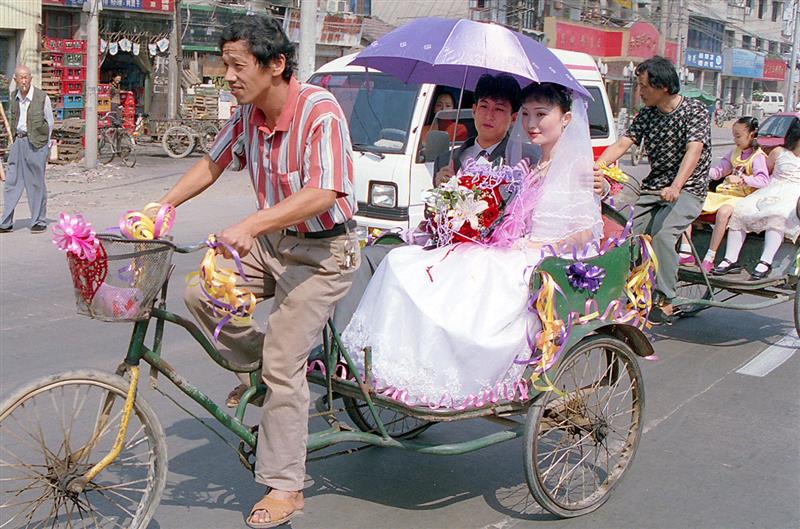當(dāng)一些新人爭(zhēng)相用“奔馳、寶馬”等,高檔轎車作為迎親婚車的年代,2002年10月8日上午,武漢市武昌區(qū)和平大道上,卻出現(xiàn)了一隊(duì)用人力三輪車作為婚車的迎親車隊(duì)(人力三輪車在武漢叫做“麻木”,是最土氣的交通工具),成為一道靚麗的風(fēng)景,引來(lái)不少路人駐足觀看。石一