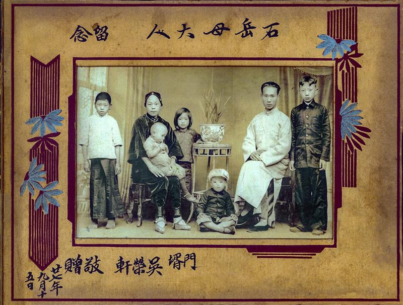 圖中的男主人吳榮軒老先生是云南省瀘西縣第一個(gè)照相人,妻子石氏(圖中女主人)十年前從外縣嫁到吳家,由于當(dāng)時(shí)的交通(僅有馬幫)條件落后及家庭事務(wù)石老太太一直沒(méi)有回過(guò)娘家。岳母十分思念女兒一家,吳老先生自拍了一張全家福精心裝裱后寄給岳母以慰老人的思念之情。 民國(guó)27年 倪建斌