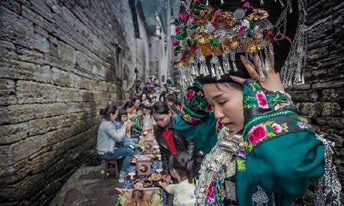 “鳳凰銀飾節(jié)”古鎮(zhèn)巡游-袁曉天 攝 風(fēng)雨無(wú)阻游人潮-常青 鳳凰苗族四月八-明克林 攝 苗家鼓舞-吳曉麗 遠(yuǎn)方的朋友干一杯-吳曉麗